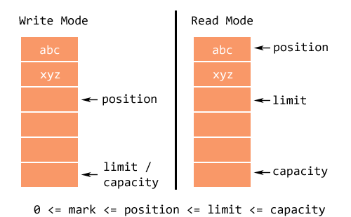 | limit | 버퍼에서 읽거나 쓸 수 있는 위치의 한계를 나타냄. capacity 보다 작거나 같다. |