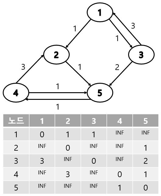먼저 다음과 같이 그래프에 대해서 인접 행렬을 초기화한다.