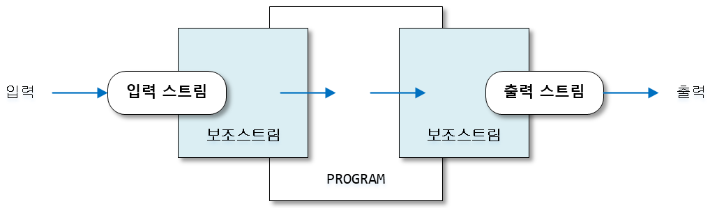 이 보조 스트림으로 데이터를 입출력할 때 주의할 점은 데이터를 출력한 순서대로 데이터를 읽어야 한다.
