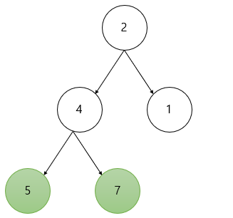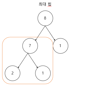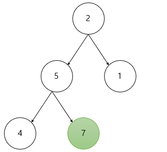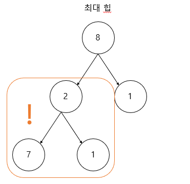 그런데 힙 구조 안에서 특정 노드 때문에 최대 힙 구조가 붕괴되는 경우가 있다. 다음과 같은 경우이다. (7과 2 때문에 최대 힙 구조가 붕괴되었다.)